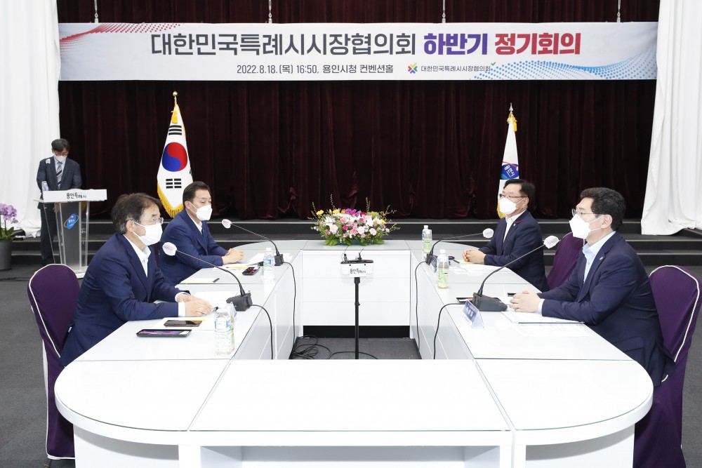 18일 오후, 용인시청 컨벤션홀에서 4개 특례시 시장으로 구성된 대한민국특례시시장협의회(대표회장 이상일 용인특례시장, 이하 협의회)는 「2022 하반기 정기회의」를 개최했다.