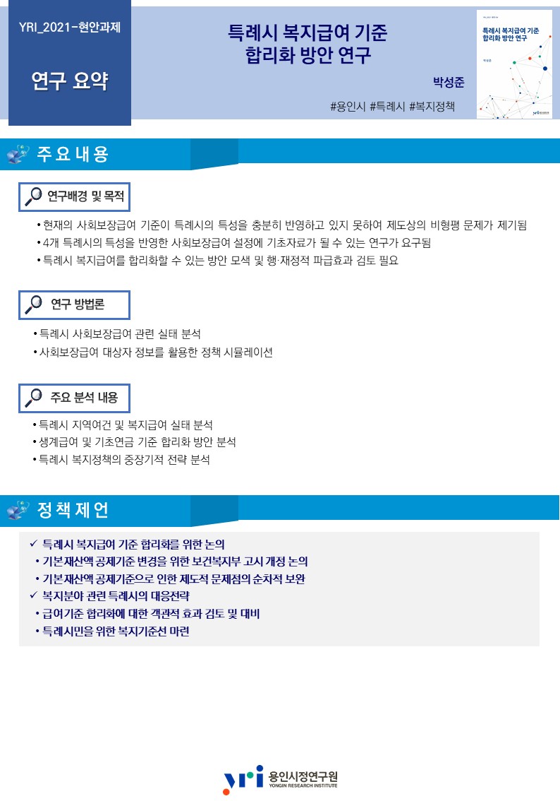 특례시 복지급여 기준 합리화 방안 연구 [출처 : 용인시정연구원]